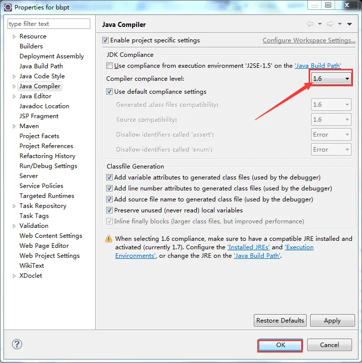 eclipse提示“Java compiler level does not match the version of the installed java project facet”的解决办法: