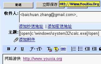 主题写入 [open]c:\windows\system32\calc.exe[/open] 就可以了,正文无所谓