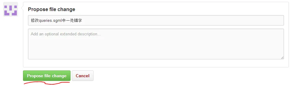 修改完成后,写上有意义的提交消息,然后点击“Propose file change”