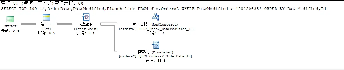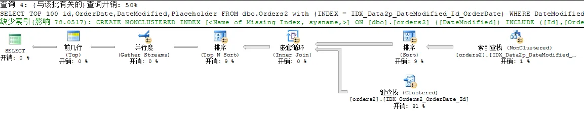 SELECT TOP 100 id,OrderDate,DateModified,Placeholder FROM dbo.Orders2 with (INDEX = IDX_Data2p_DateModified_Id_OrderDate) WHERE DateModified >='20120625'
