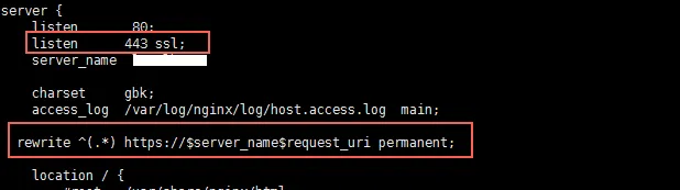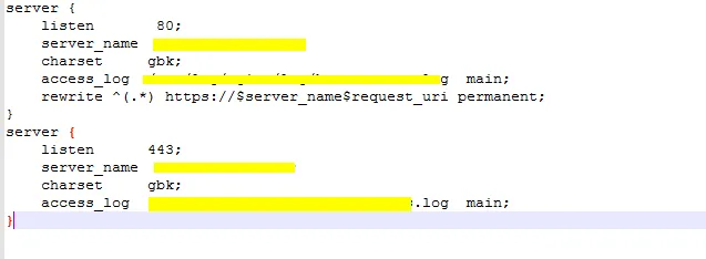 发现80端口和443端口在nginx的同一个server标签内,此处配置有问题