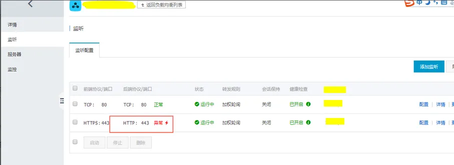 问题:SLB上https:443端口监控检测失败,https跳转不成功