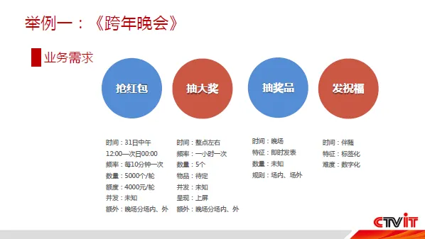 在央视跨年晚会中,CCTV使用了阿里云服务来满足抢红包、抽大奖、抽奖品、发祝福等业务场景。在跨年晚会中,每分钟参与评论的人次最高达到16万人/分钟,摇红包参与人次最高达到170万人/分钟,整场晚会参与互动人数最高达280万人/分钟。通过分析可以看到跨年晚会参与互动人数有着明显的波峰波谷特征,这与主持人的互动有着明显联系。