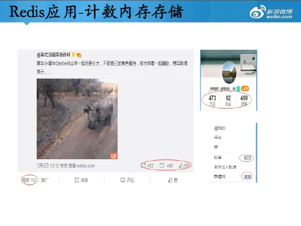 新浪微博2010年正式引入Redis,使用Redis的场景主要包括:关系、计数、通知提醒等。主要面临的挑战就是存储性能与成本的矛盾。新浪技术工程师们通过长期的探索努力,通过多种方式解决了多种问题,例如:单机部署多个实例不同时触发持久化操作;RDB和AOF相结合的持久化方式;主从复制过程实现增量复制,减小对带宽的压力;实现动态升级,版本管理统一;定制化数据结构;冷热数据分离等。