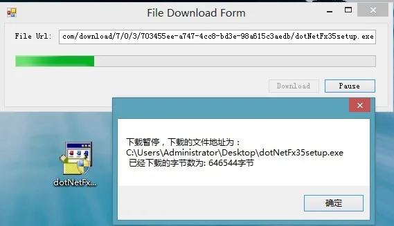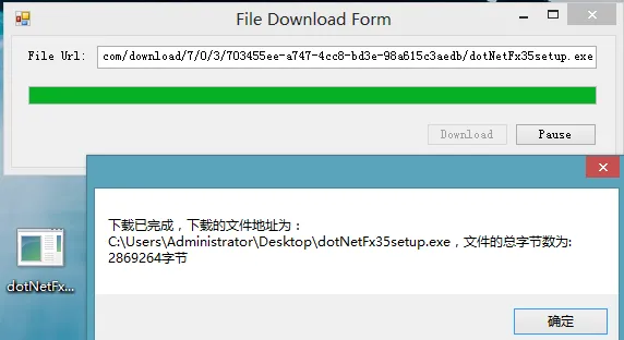 点击确定按钮之后,Download按钮会重新变成可用,此时我们可以继续点击Download按钮来下载进行下载,下载完成之后会下载完成弹出框,运行结果如下: