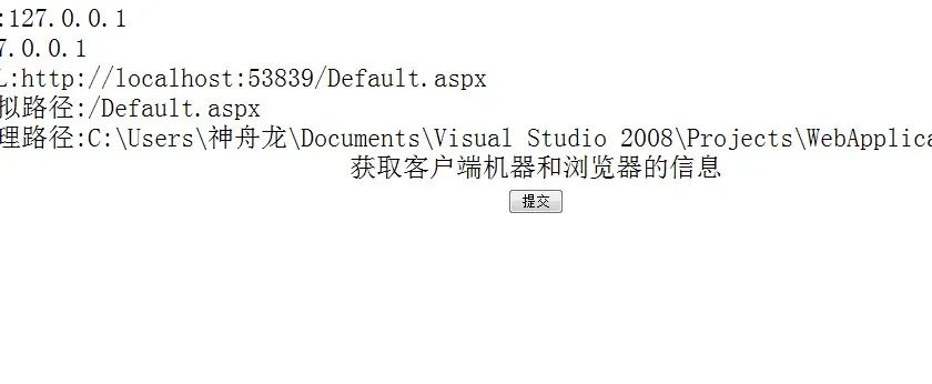 Response.Write( " 客户端ip地址: " + Request.UserHostAddress + " <br/> " );