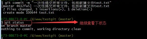 接着我们可以使用git commit一次性提交到分支上,如下:
