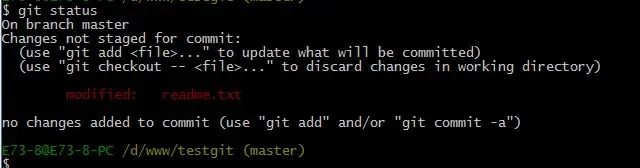 上面的命令告诉我们 readme.txt文件已被修改,但是未被提交的修改。