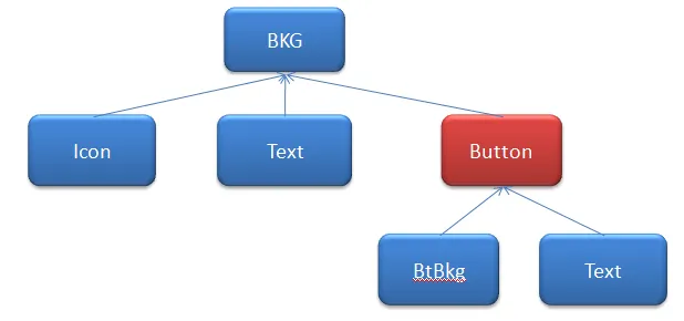 我们可以定义Button的对象树片断是: