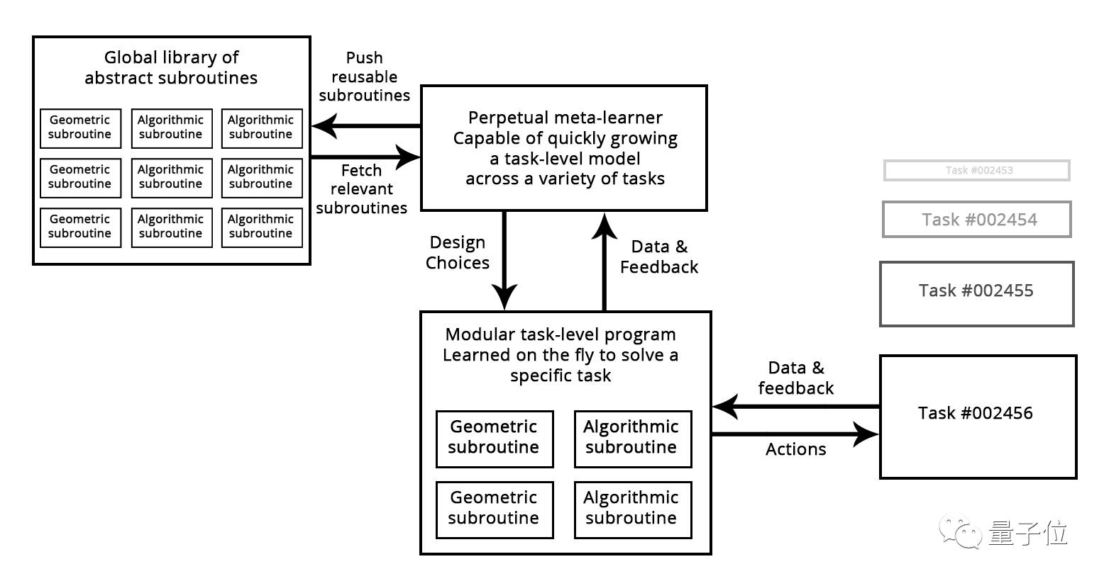 将来,元学习系统能以类似的方式,通过在一个高级可再利用模块的全局库中搜索模块,用来组装新程序。
