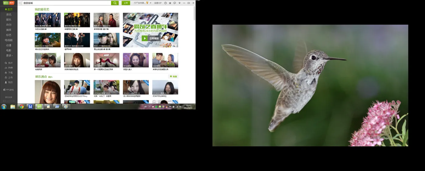 看到2.6中的截图,突然豁然开朗,原来爱奇艺视频窗口显示在另一个屏幕上去了。原因是电脑除有个集成的显卡外,还有个独立显卡,是双显卡。