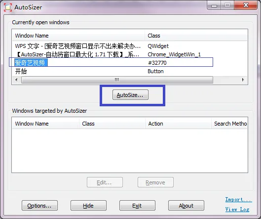 如下图所示一样,选中“爱奇艺视频”,然后点击按钮“AutoSize...”: