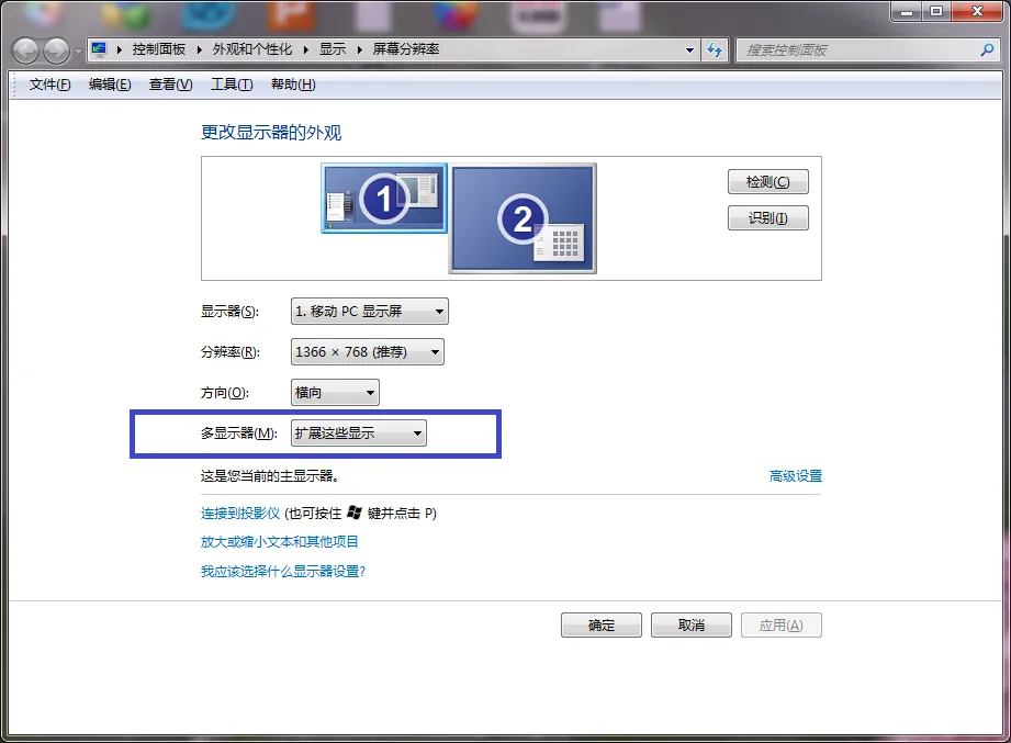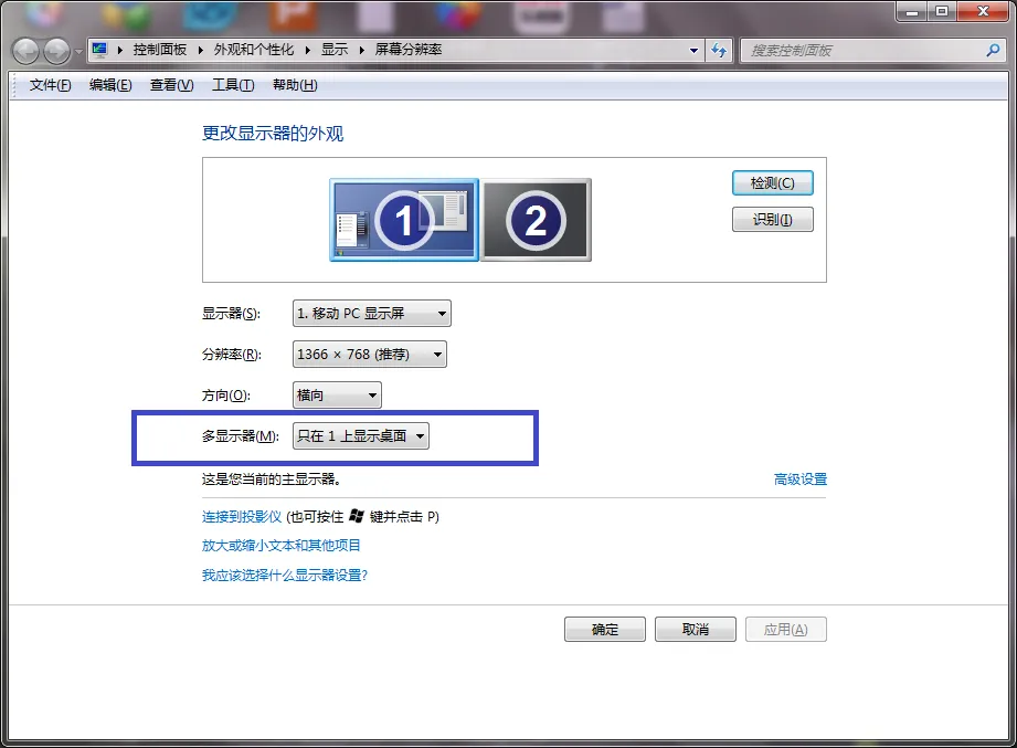 为验证上猜测,进入屏幕分辨率窗口,一看果然如此: