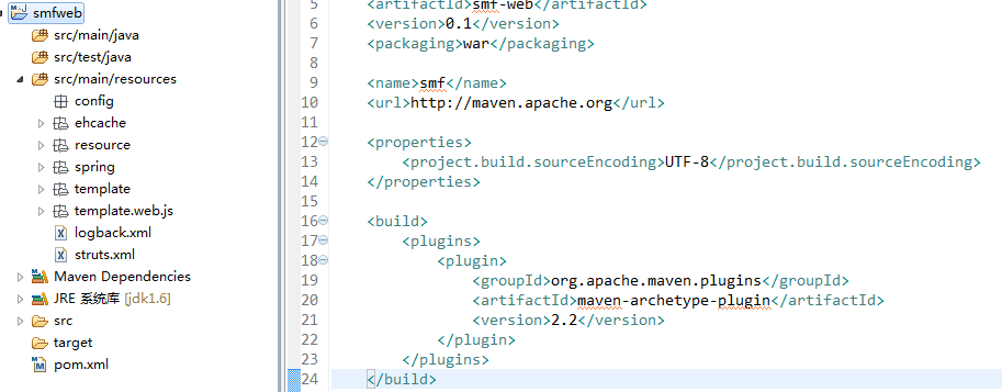 1、首先使用eclipse创建一个新的maven project,然后把配置好的一些公用的东西放到相应的目录下面