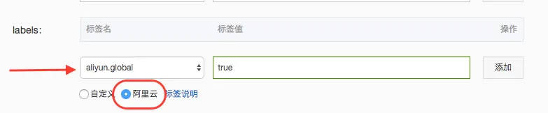 点开更多设置,配置aliyun.global标签,值为true。