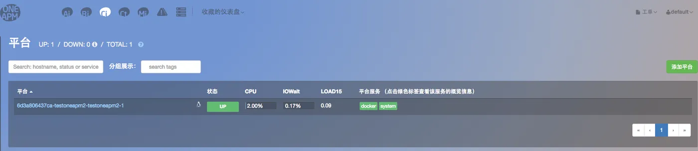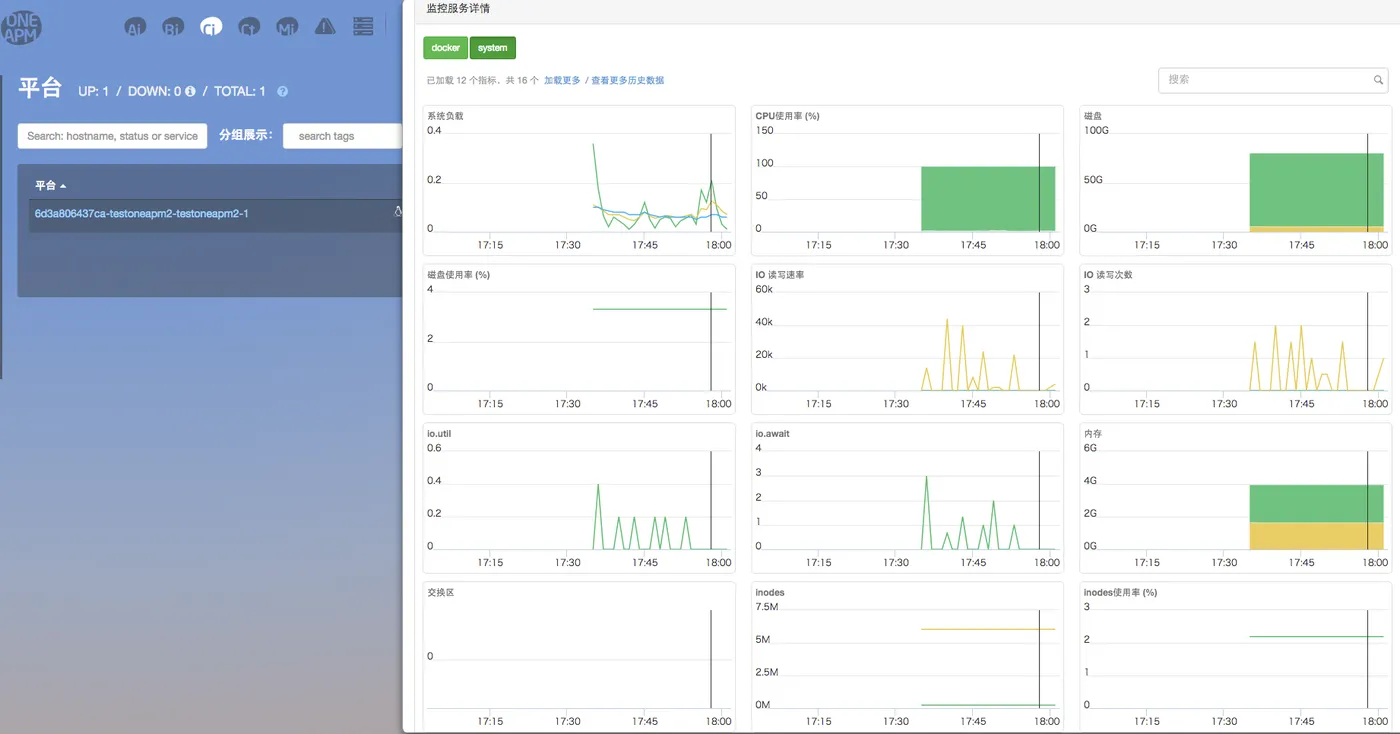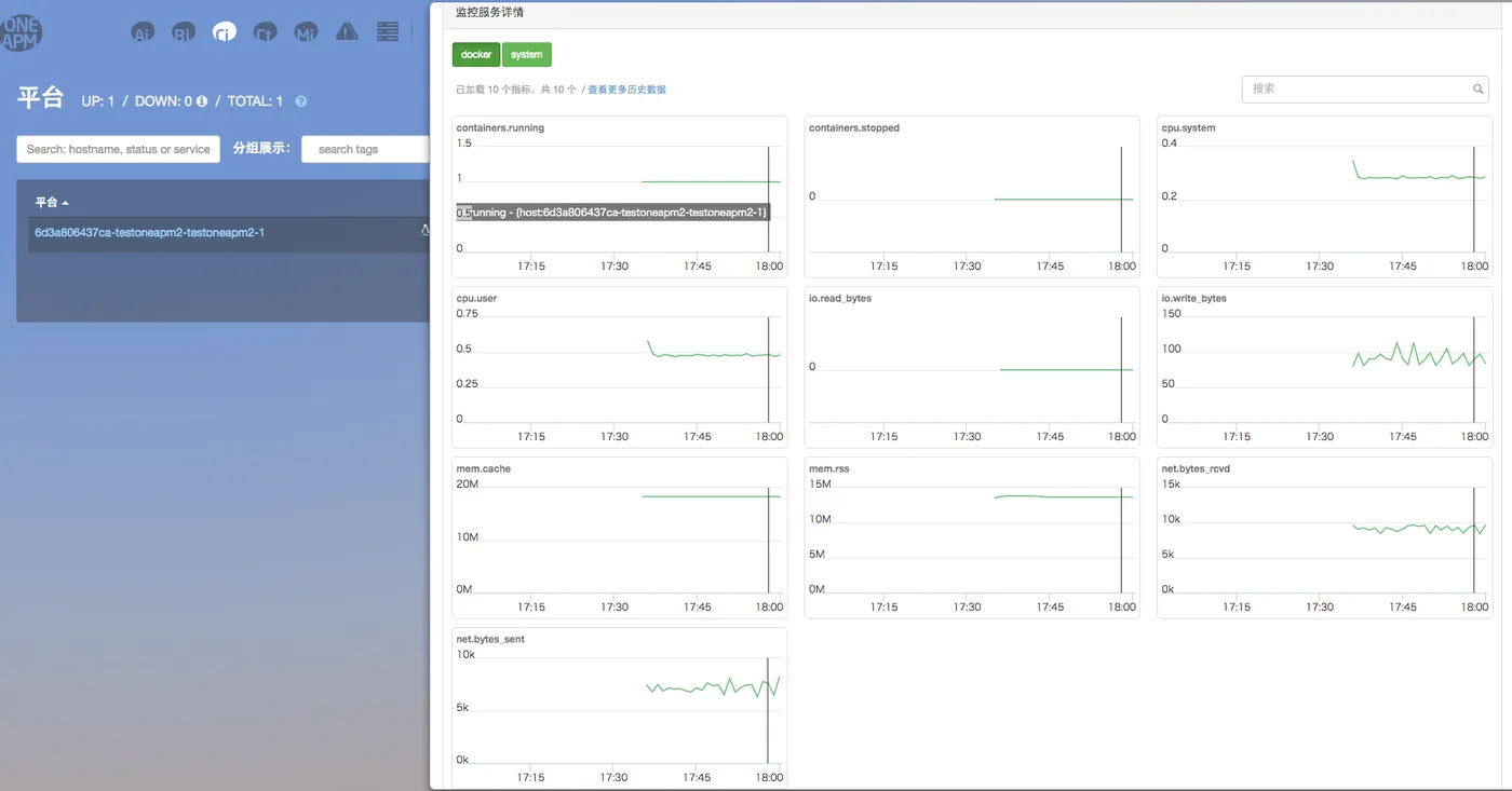 One APM CI平台此时已经展示上面添加的包含OneAPM CI agent的容器相关监控数据。