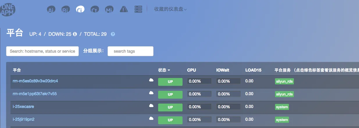 Note5: 这个时候你阿里云帐号下的所有的ECS,RDS实例都已经被监控,CI平台界面可以看到相关信息。