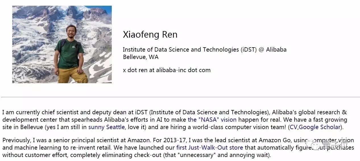 阿里巴巴方面对外确认了该消息,任小枫的个人主页也已经进行了更新。简介页显示,他将继续留在西雅图工作,招募并组建世界一流的计算机视觉团队。任小枫还将iDST称为“阿里巴巴实现NASA计划的先锋”。