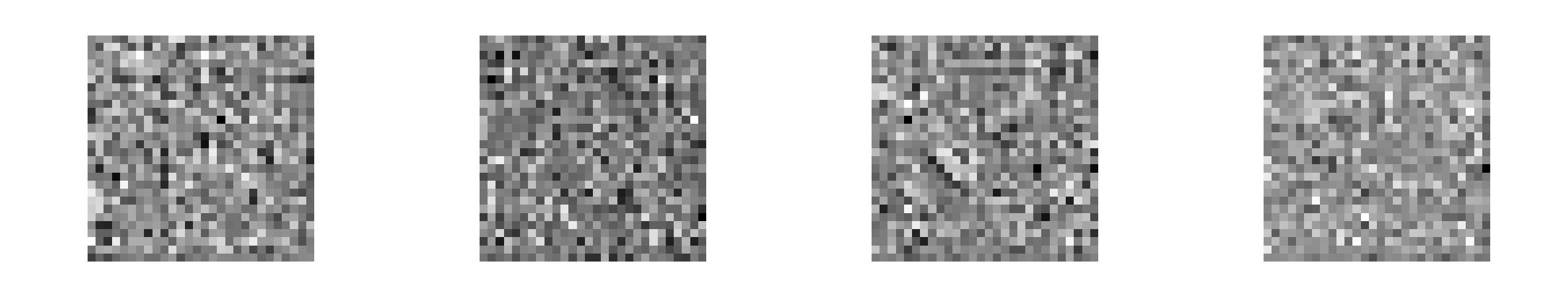定义完生成器和判别函数,我们现在看看没有训练过的生成器会生成怎样的样例。
