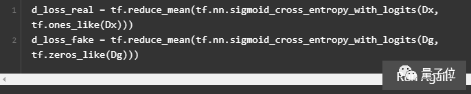 sigmoid_cross_entropy_with_logits 是在未缩放的值下运行的,而不是在0到1之间的概率值。看一下判别器的最后一行:这里并没有softmax或sigmoid函数层。如果判别器“饱和”了,或者有足够的信心可以在给出生成图像后返回0,那么就会使判别器的梯度下降失去作用。