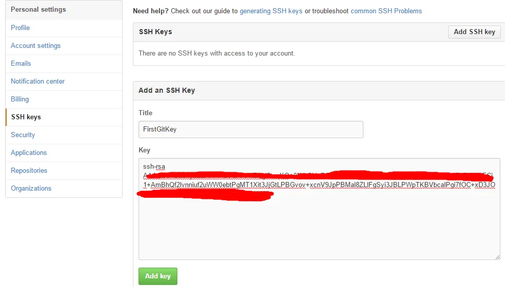 6.这个时候添加SSH Key即可,Title自定义,key就是之前用工具生成的key: