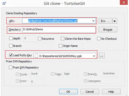 9.空白处右键Git Clone,从GitHub上下载代码,url就是上图的SSH,Directory是本地目录,第三个红色框框就是第四步中保存的密钥。