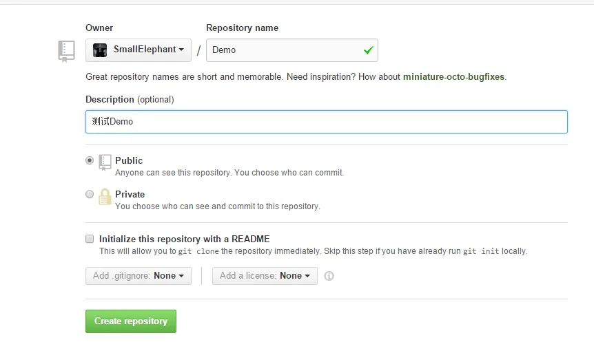 7.新建一个Repository,填写Repository名称以及说明: