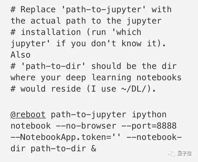 我们可以把Jupyter设置成自动启动,使用crontab来设置。运行crontab -e,然后把如下代码添加在最后。