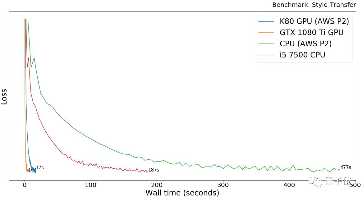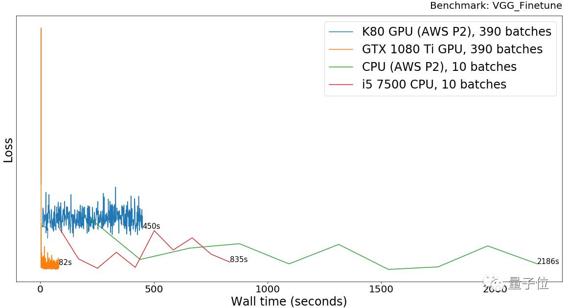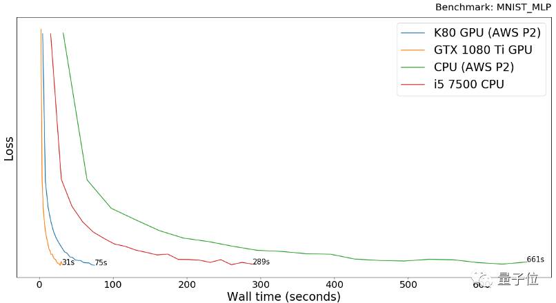 GTX 1080 Ti比AWS P2 K80快4.3倍。CPU比GPU慢30-50倍。