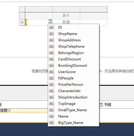 因为我这边字段比较多,我就选择了几个绑定了上去