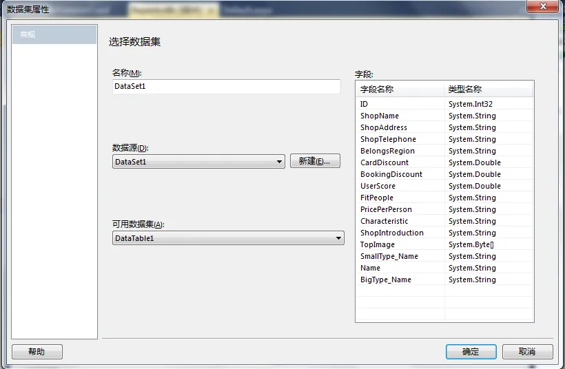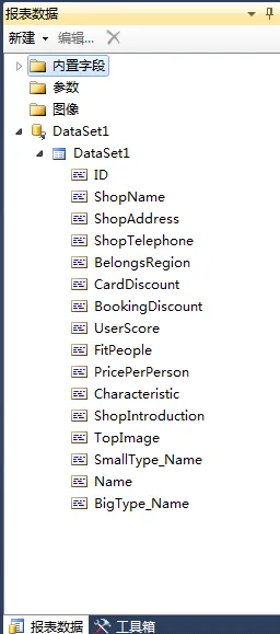 在VS2010的RDLC中,将“表”控件拖到视图中的时候他就会要你选择数据源,大家也可以先不选。等数据源设计好了再选