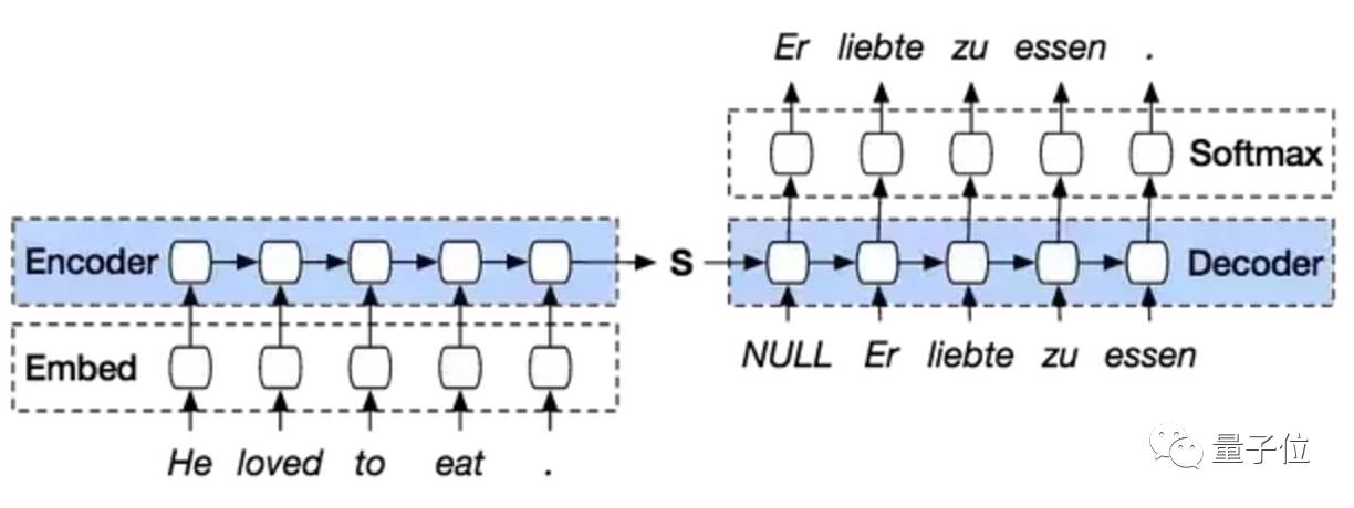注意力机制最经常被用于序列转换(Seq-to-Seq)模型中。如果不引入注意力机制,模型只能以单个隐藏状态单元,如下图中的S,去捕获整个输入序列的本质信息。这种方法在实际应用中效果很差,而且输入序列越长,这个问题就越糟糕。