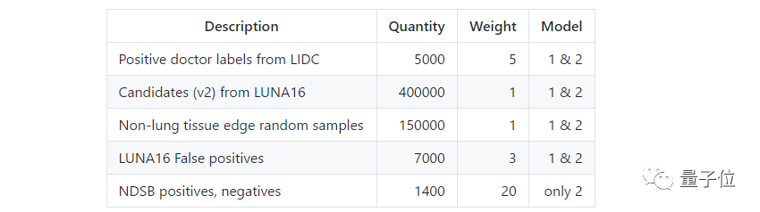 LIDC数据集中被正面标记的数量是LUNA16数据集样本数的五倍。因为这些标记是4名医生的综合注释,所以一个结节可能被标记了4次。但LUNA16也忽略了不到3名医生标注的结节。我决定在训练集中保留这些被忽视的结节,因为他们也提供了宝贵的结节恶性信息。