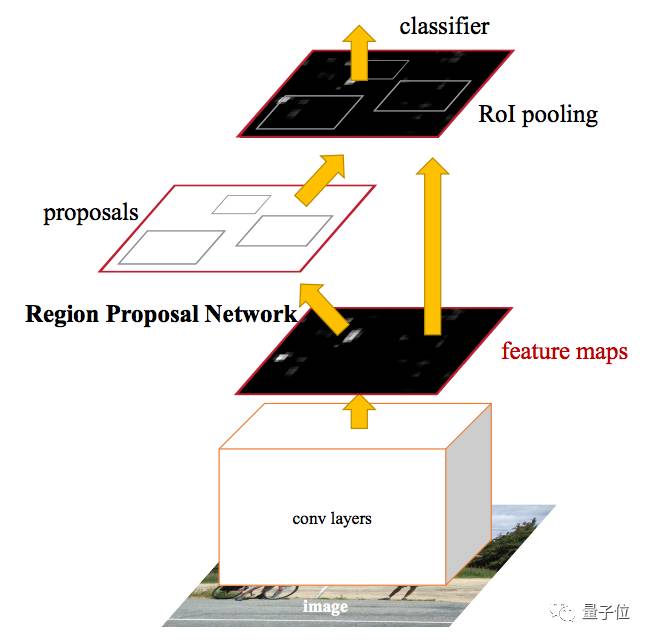 图12:在Faster R-CNN中,单个CNN网络用来实现区域建议和对象分类。