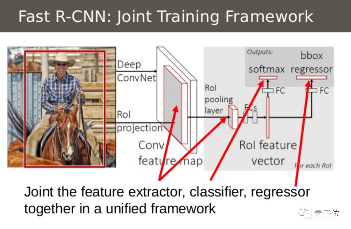 Fast R-CNN的第二个创新点是在一个模型中联合训练卷积神经网络、分类器和边界框回归模型。在R-CNN中,我们使用了卷积神经网络来提取图像特征,用支持向量机来分类对象和用了回归模型来缩小边界框,但是Fast R-CNN使用单个网络模型来实现以上三个功能。