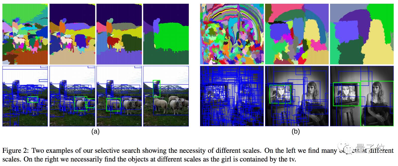 图6:通过多种尺寸的边框进行选择性搜索,查找具有相同的纹理、颜色或强度的相邻像素。
