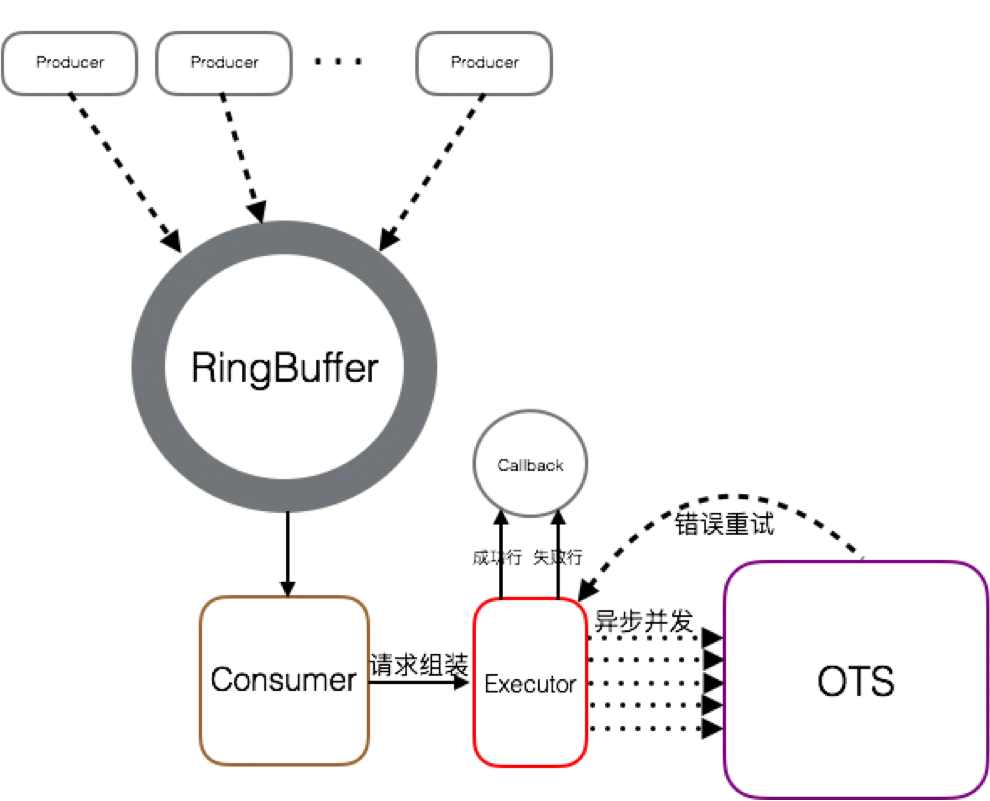 - 行级别callback:SDK提供请求级别的callback,TableStoreWriter提供行级别的callback,让业务逻辑专注于处理行数据,完全屏蔽底层的请求单元。