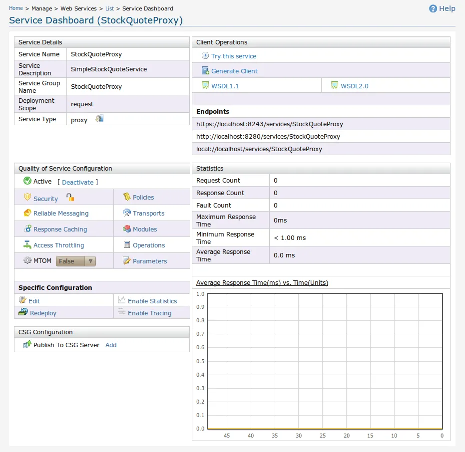 端点可以添加,编辑和删除。您还可以启用地址和WSDL端点的统计信息。