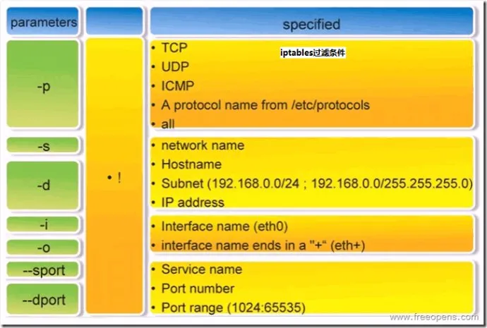 规则(rules)其实就是网络管理员预定义的条件,规则一般的定义为“如果数据包头符合这样的条件,就这样处理这个数据包”。规则存储在内核空间的信息 包过滤表中,这些规则分别指定了源地址、目的地址、传输协议(如TCP、UDP、ICMP)和服务类型(如HTTP、FTP和SMTP)等。当数据包与规 则匹配时,iptables就根据规则所定义的方法来处理这些数据包,如放行(accept)、拒绝(reject)和丢弃(drop)等。配置防火墙的 主要工作就是添加、修改和删除这些规则。