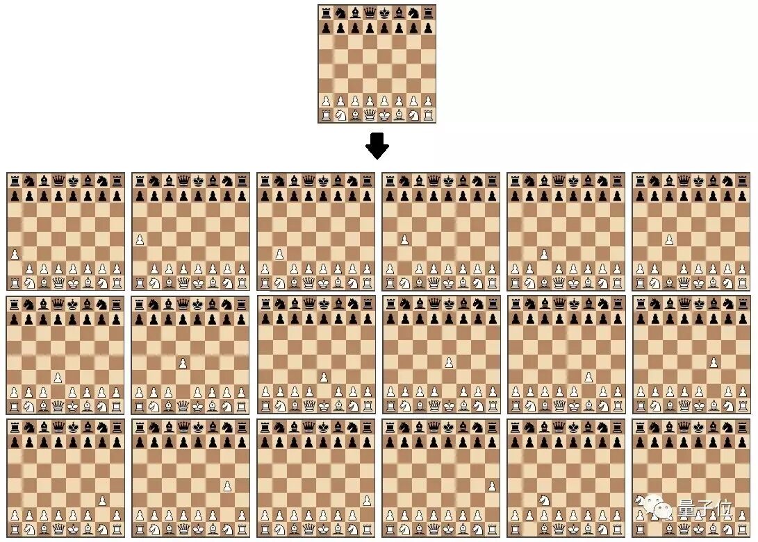 图1:对移动生成功能进行可视化:起始位置作为输入,输出是该棋局的所有可能移动.