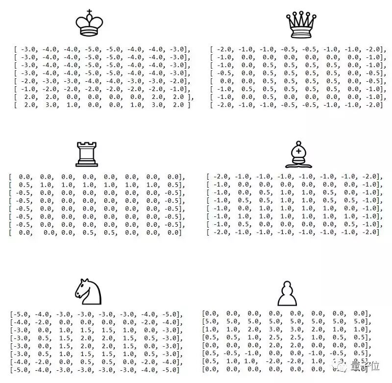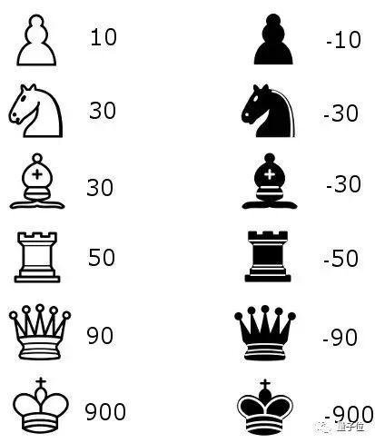 我们将使用在维基象棋编程中提出的一种棋子价值表。