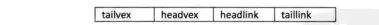 其中,tailvex是指弧起点在顶点表的下表,headvex是指弧终点在顶点表的下标,headlink是指入边表指针域,指向终点相同的下一条边,taillink是指边表指针域,指向起点相同的下一条边。如果是网,还可以增加一个weight域来存储权值。