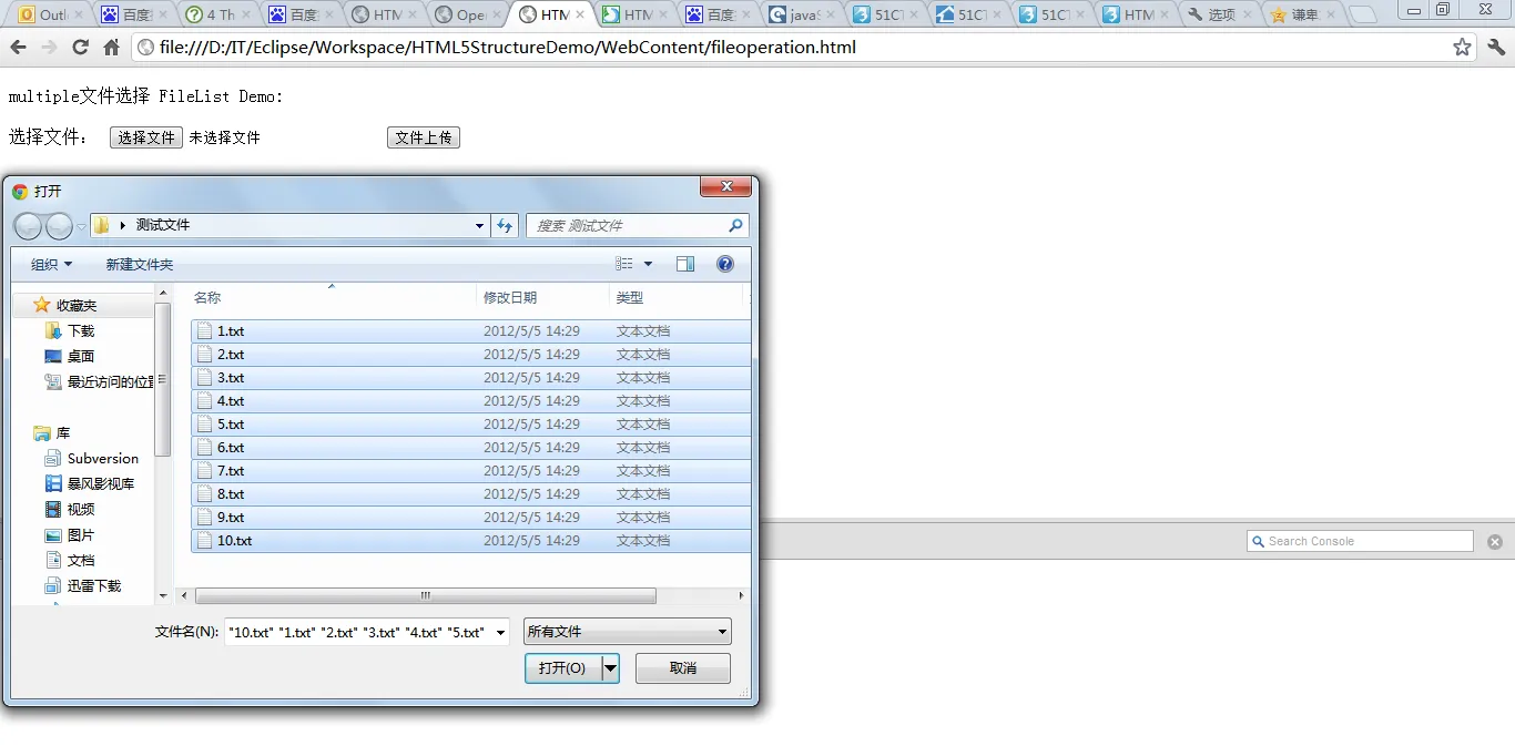 选中之后,点"打开”,则<input>输入框中会提示你已经选择了多少个文件:
