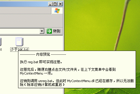 现在我们已经实现了所有需要的COM接口. 可是我们怎样才能让浏览器使用我们的扩展呢?首先,我们要注册动态库。但仅仅这样是不够的,为了告诉浏览器使用我们的扩展, 我们需要在文本文件类型的注册表键下注册扩展。