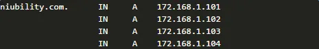 这样每次向DNS系统询问该域名的ip地址时(Tell Me The IP Address of niubility.com.),DNS会轮询(Round Robin)这个ip列表,每次给一个不同的ip,从而达到负载均衡的效果。