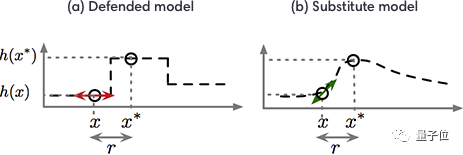 执行梯度遮蔽的防御策略,通常导致在特定方向和训练点的邻域中,产生非常平滑的模型,这使得对手更难以找到指示良好候选方向的梯度,以对模型以破坏性方式干扰输入 。 然而,对手可以训练一个替代模型:通过观察防御模型给对抗输入打上何种标签。