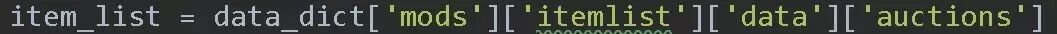 data_dict就是那份淘宝数据解析成的字典,要取到后面第四个key,后面的数据才是我们要的商品数据