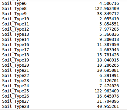 这里要提一下,我之前如果没有执行删除'Soil_Type7', 'Soil_Type15'的内容的话,他们的偏离量为0,同样的,大家也可以通过这个方法来剃掉Soil_Type这个废柴。(本来就是用std剃掉的来着。。。)