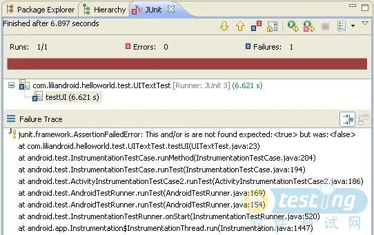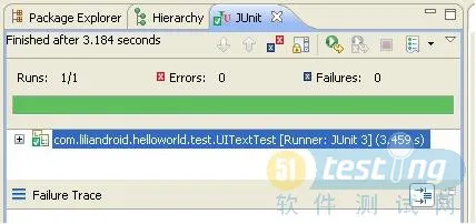 选择测试工程HelloWorldTest右击,选择Run As->AndroidJUnit Test运行测试程序