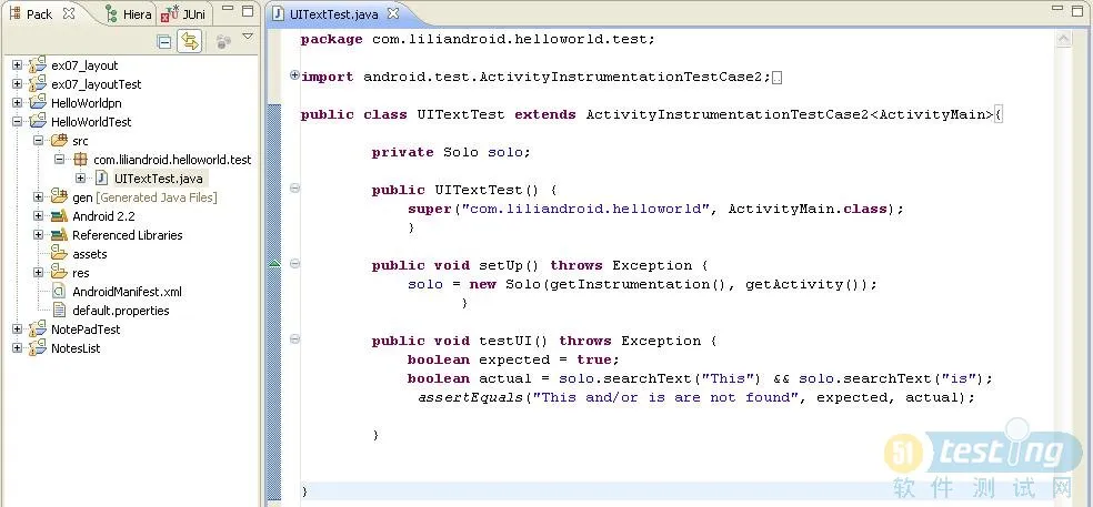 注:这个Case是测试运行了ActivityMain后的界面上是否有This和is这两个文字。